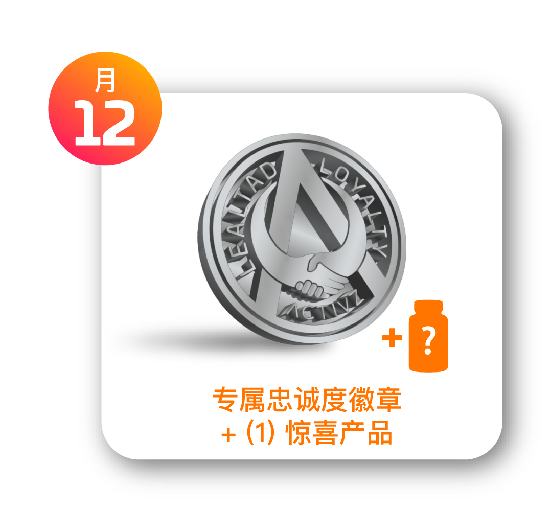 请记住,每次每月重复订单(包括单品和专属产品套装)都可以持续累积产品积分。